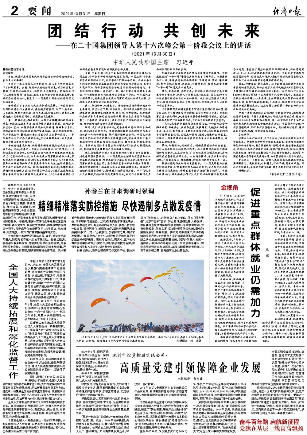 深投控党委认真贯彻新时代党的建设总要求,充分发挥把方向、管大局、促落实的领导作用,全面践行“跟党一起创业”理念,走出了一条以高质量党建引领保障企业高质量发展之路。