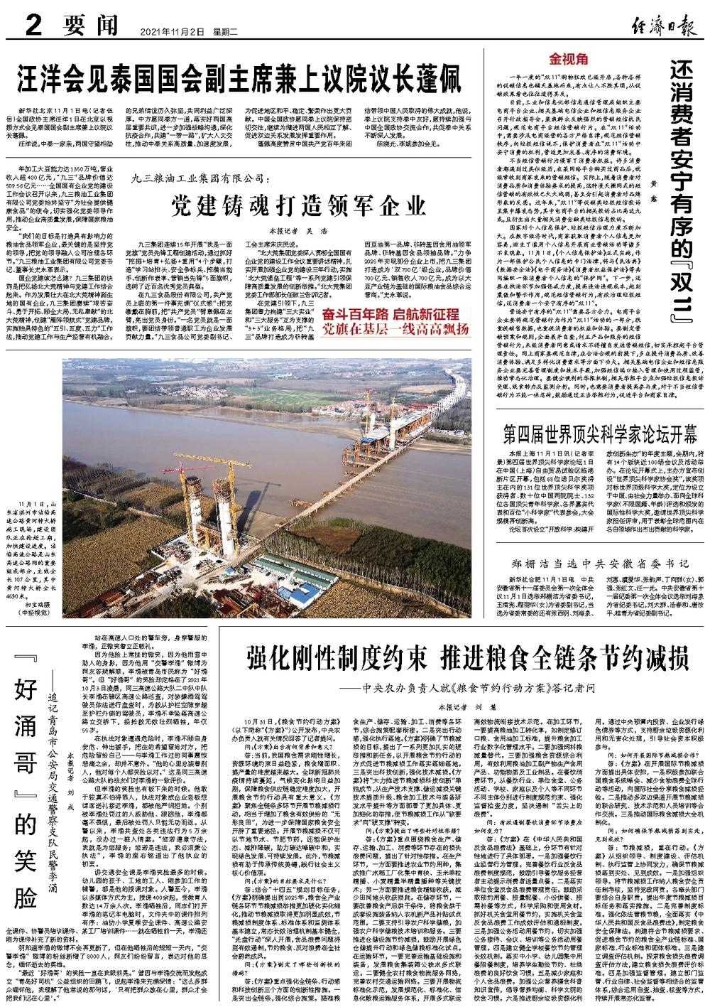 “我们的目标是打造具有影响力的粮油食品领军企业,最关键的是坚持党的领导,把党的领导融入公司治理各环节。”九三粮油工业集团有限公司党委书记、董事长史永革表示。