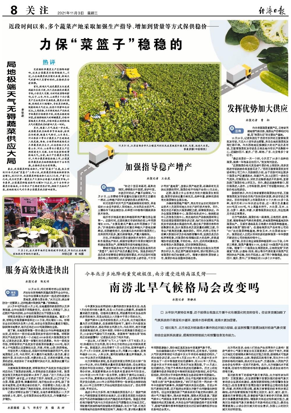 对此,沂南县除对菜农提供技术指导外,还结合秋冬蔬菜生产特点,根据市场需求引导菜农增加叶菜和速生蔬菜生产,保障蔬菜市场均衡稳定供应。