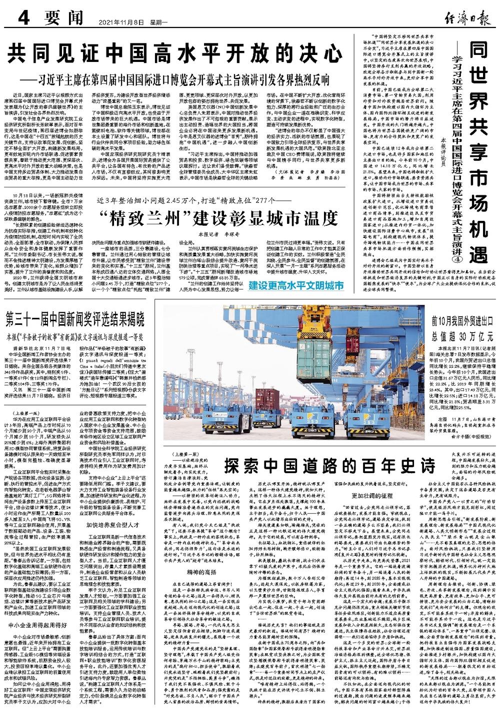 中国将持续出台支持性鼓励性政策扩大进口。从增设进口贸易促进创新示范区,优化跨境电商零售进口商品清单,到推进边民互市贸易进口商品落地加工,增加自周边国家进口;从推进内外贸一体化,加快建设国际消费中心城市,发展“丝路电商”,到构建现代物流体系,提升跨境物流能力……中国在同世界共享市场机遇方面动作频频,实招迭出。