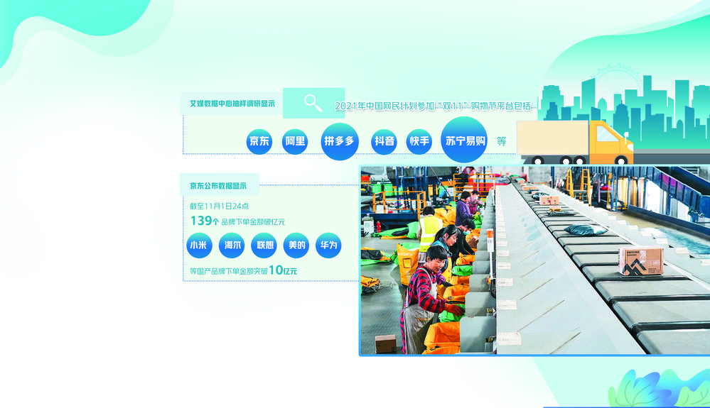 同时,参与“双11”的平台更多了。艾媒数据中心的抽样调研显示,2021年中国网民计划参加“双11”购物节的平台包括京东、阿里、拼多多、抖音、快手和苏宁易购等多个平台。