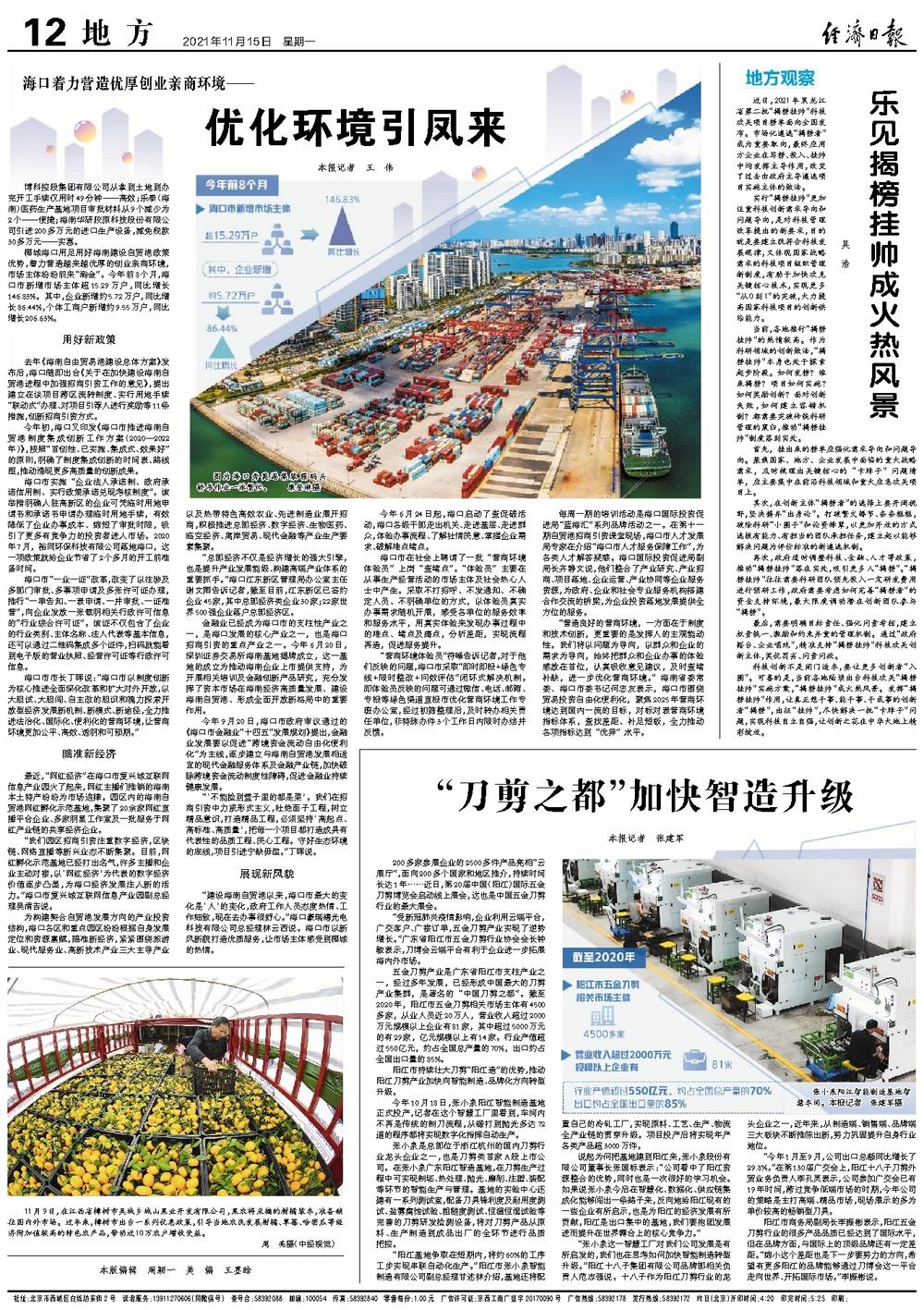“张小泉这一智慧工厂对我们公司发展是有所启发的,我们也在思考如何加快智能制造转型升级。”阳江十八子集团有限公司品牌部相关负责人范志强说。十八子作为阳江刀剪行业的龙头企业之一,近年来,从制造端、销售端、品牌端三大板块不断推陈出新,努力巩固提升自身行业地位。