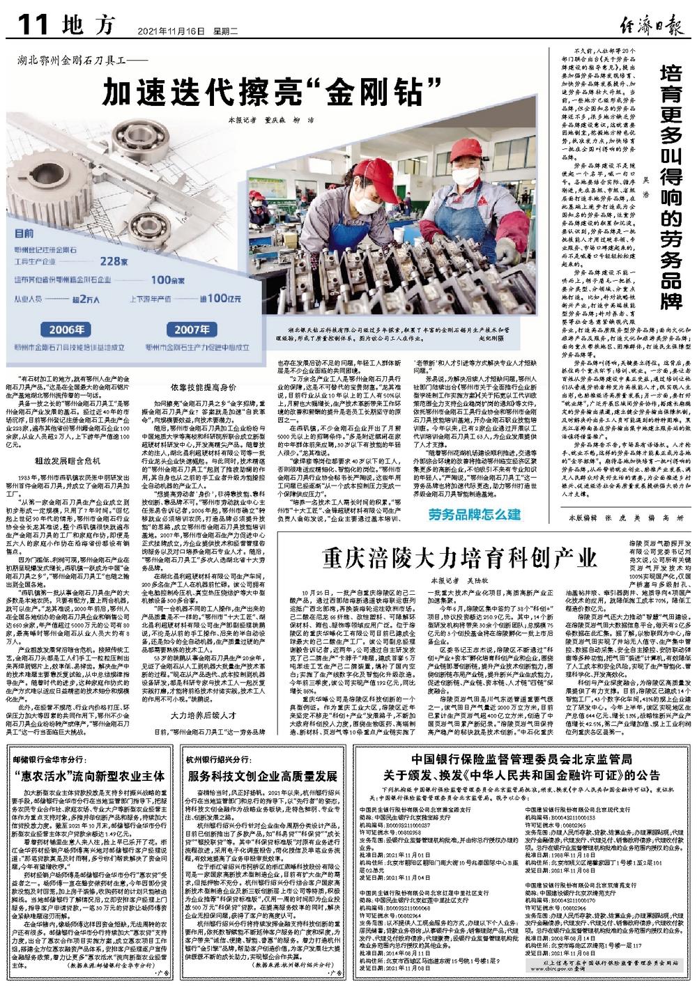 “随着鄂州花湖机场建设顺利推进,交通等外部综合环境的改善将推动鄂州临空经济区聚集更多的高新企业,不怕吸引不来有专业知识的年轻人。”严陶说,“鄂州金刚石刀具工”这一劳务品牌也将加速代际更迭,助力鄂州打造世界级金刚石刀具智能制造基地。