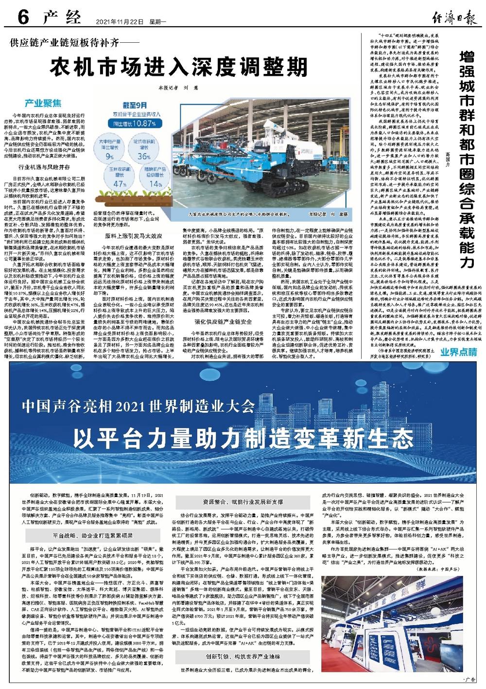 今年虽然农机行业总体形势较好,但受原材料价格上涨、限电以及国际贸易环境等各种因素叠加影响,农机行业面临着较为严峻的产业链供应链安全。