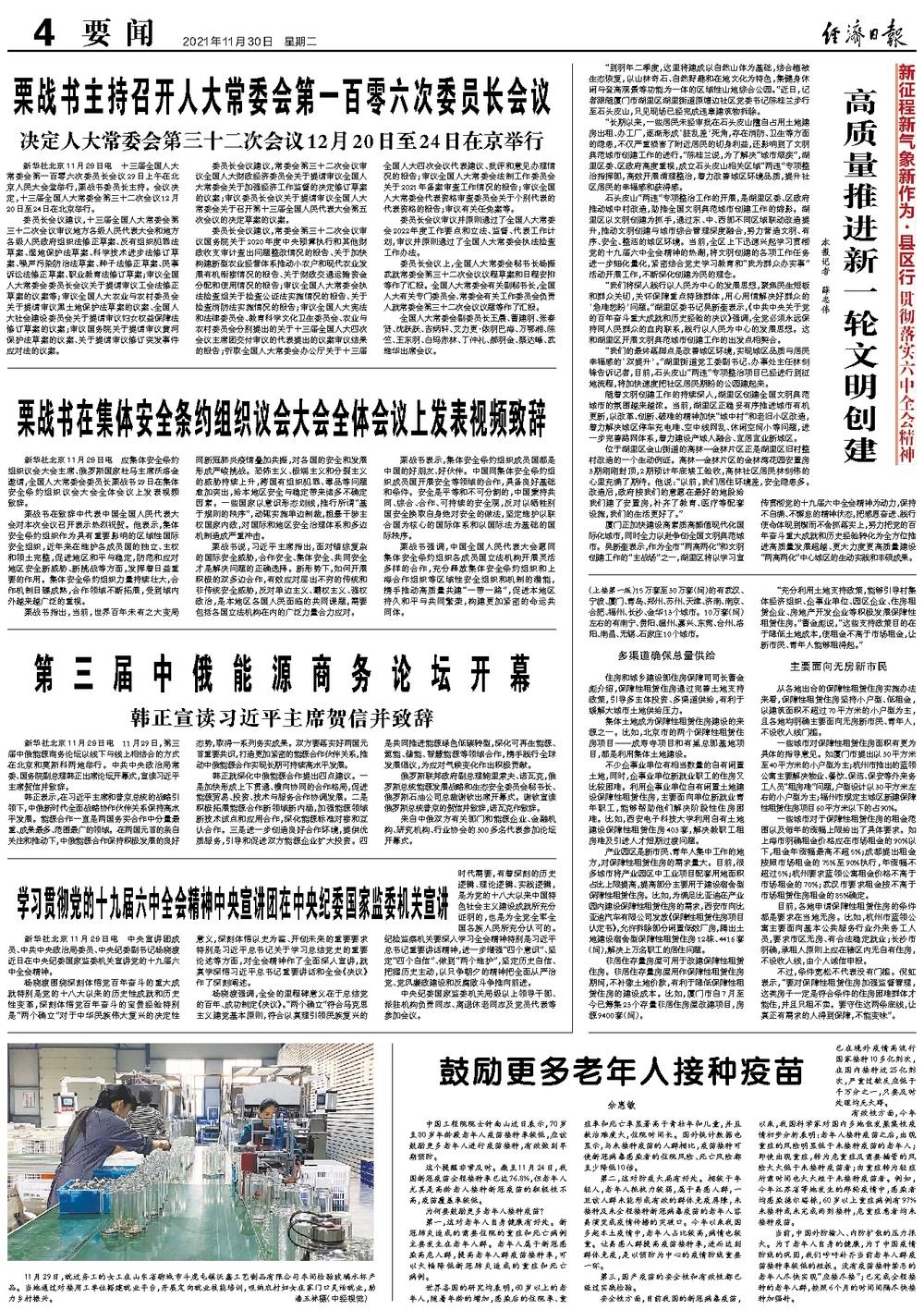 新华社北京11月29日电 11月29日,第三届中俄能源商务论坛以线下与线上相结合的方式在北京和莫斯科两地举行。中共中央政治局常委、国务院副总理韩正出席论坛开幕式,宣读习近平主席贺信并致辞。