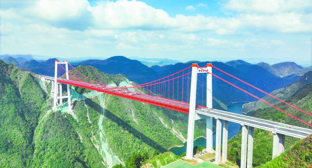 11月30日在贵州省贵定县拍摄的进行静态荷载试验的阳宝山特大桥。大桥全长1112米,主跨650米,是贵黄高速公路控制性工程。