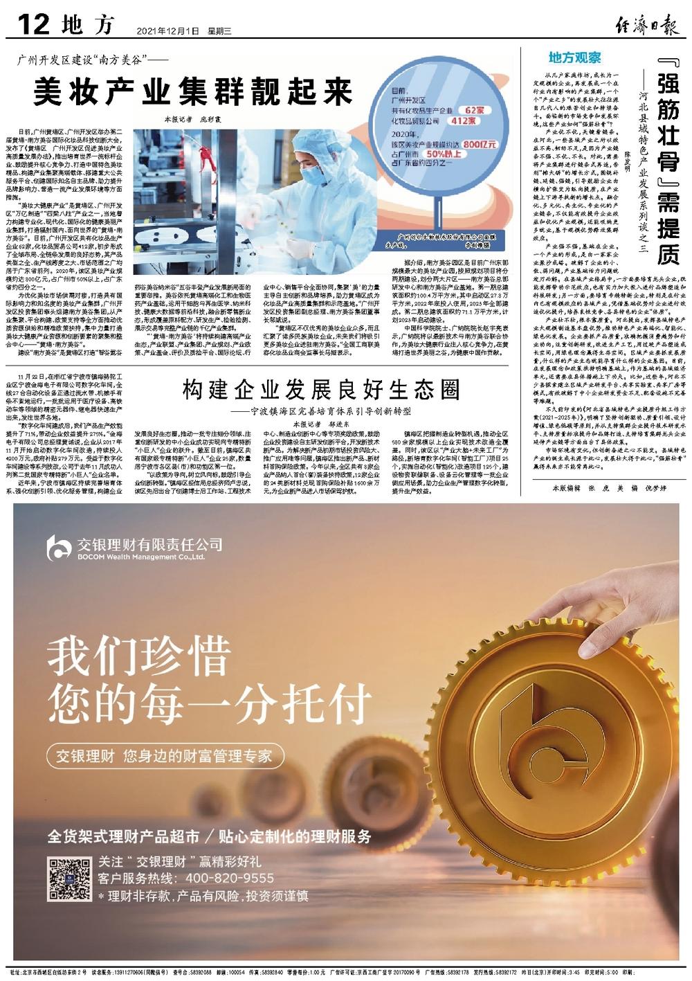 不久前印发的《河北省县域特色产业提质升级工作方案(2021-2025年)》,明确了坚持创新驱动、质量引领、设计增值、绿色低碳等原则,并从支持集群企业提升技术研发水平、支持质量标准提升和品牌打造、支持培育集群龙头企业延伸产业链等方面出台了具体政策。