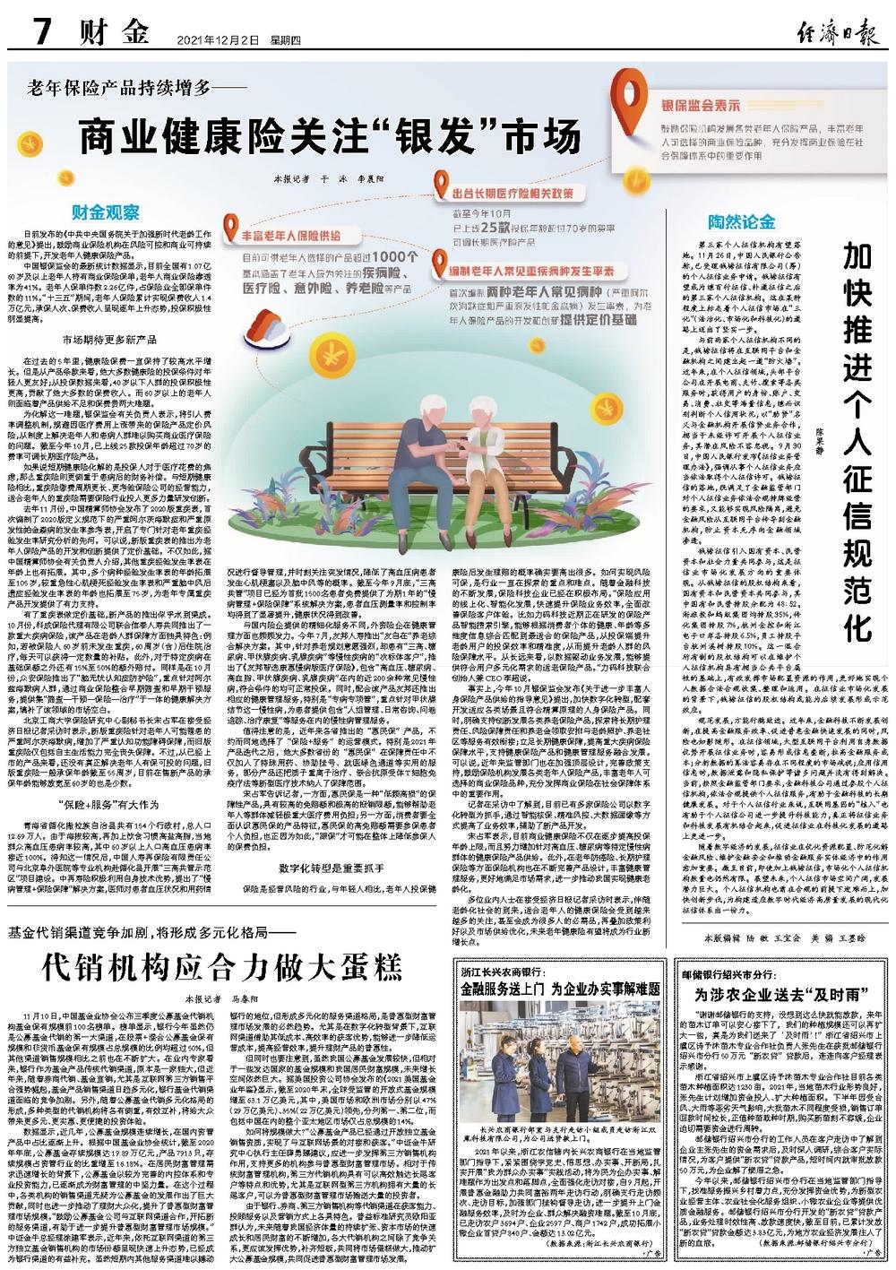 事实上,今年10月银保监会发布《关于进一步丰富人身保险产品供给的指导意见》提出,加快数字化转型,配套开发适应各类场景且符合精算原理的人身保险产品。同时,明确支持创新发展各类养老保险产品,探索将长期护理责任、风险保障责任和养老金领取安排与老龄照护、养老社区等服务有效衔接;立足长期健康保障,提高重大疾病保险保障水平,支持健康保险产品和健康管理服务融合发展。可以说,近年来监管部门也在加强顶层设计,完善政策支持,鼓励保险机构发展各类老年人保险产品,丰富老年人可选择的商业保险品种,充分发挥商业保险在社会保障体系中的重要作用。