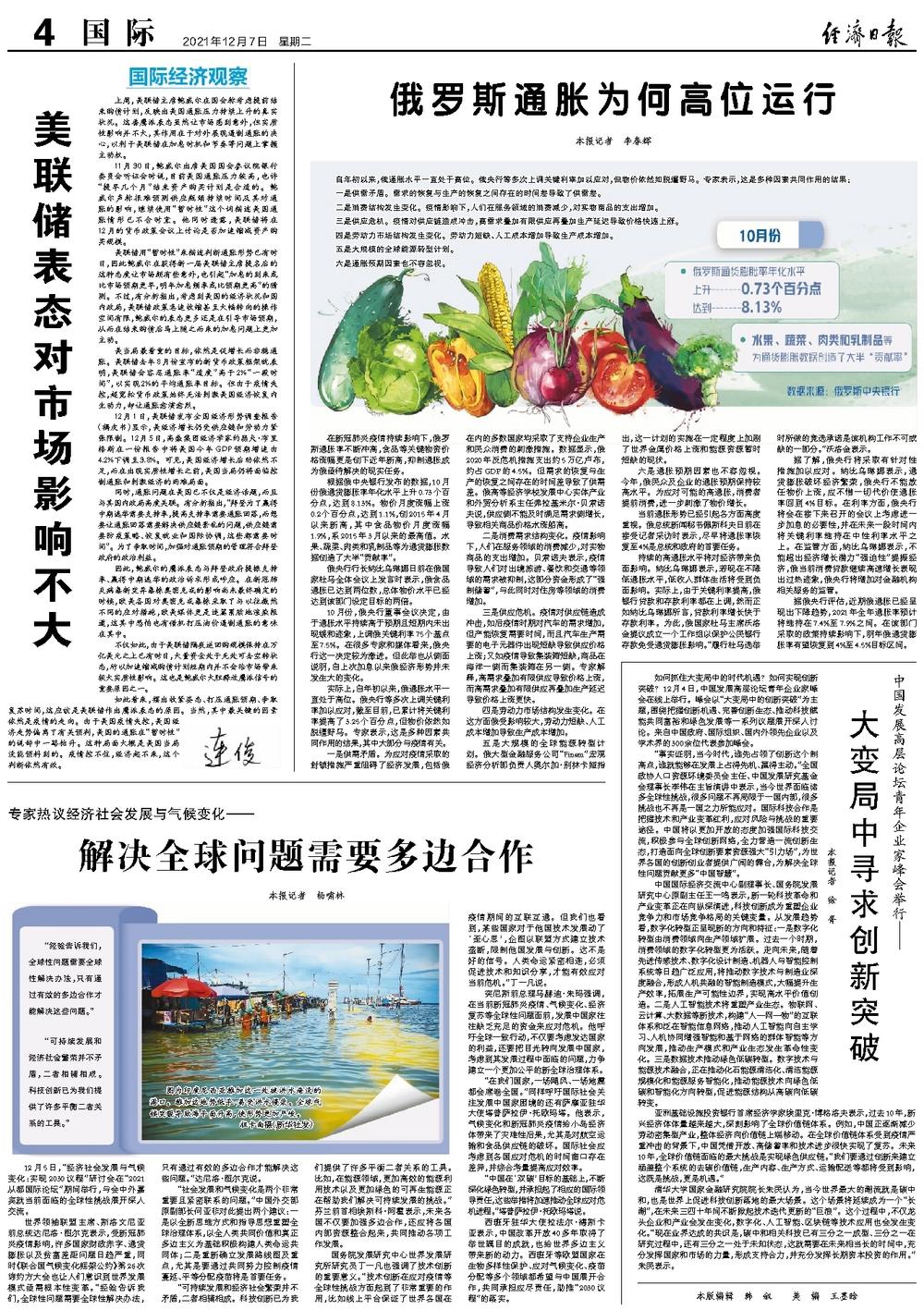 俄罗斯通胀为何高位运行 2021年12月07日  本报记者 李春辉