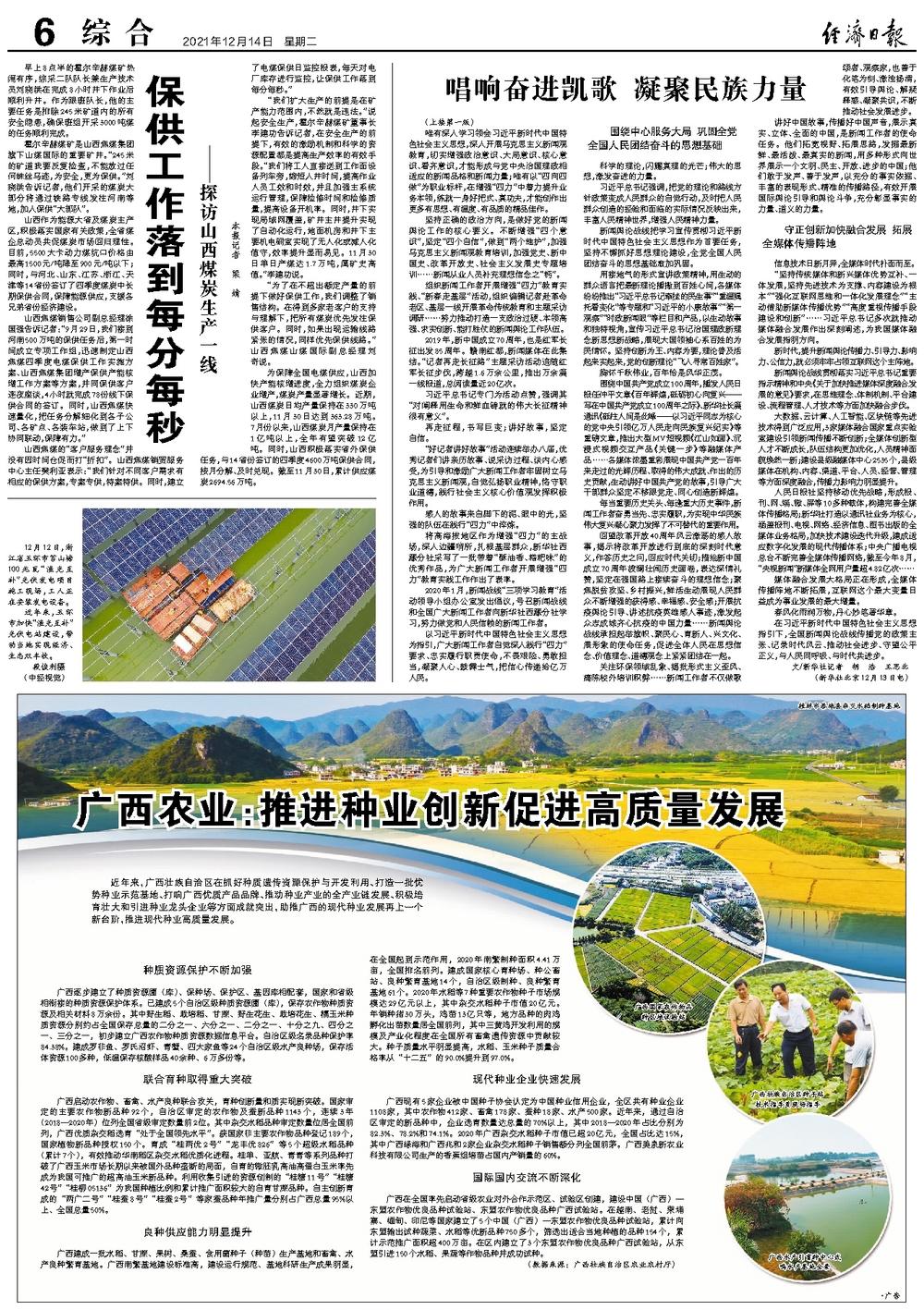 广西启动农作物、畜禽、水产良种联合攻关,育种创新量和质实现新突破。国家审定的主要农作物新品种92个,自治区审定的农作物及蚕新品种1143个,连续3年(2018—2020年)位列全国省级审定数量前2位。其中杂交水稻品种审定数量位居全国前列,广西优质杂交稻选育“处于全国领先水平”。获国家非主要农作物品种登记189个,国家植物新品种授权150个。育成“桂两优2号”“龙丰优826”等5个超级水稻品种(累计7个),有效推动华南稻区杂交水稻优质化进程。桂单、亚航、青青等系列品种打破了广西玉米市场长期以来被国外品种垄断的局面,自育的微胚乳高油高蛋白玉米率先成为我国可推广的超高油玉米新品种。利用收集引进的资源创制的“桂糖11号”“桂糖42号”“桂柳05136”为我国种植比例和累计推广面积较大的自育甘蔗品种。自主创新育成的“两广二号”“桂蚕8号”“桂蚕2号”等家蚕品种年推广量分别占广西总量95%以上、全国总量50%。