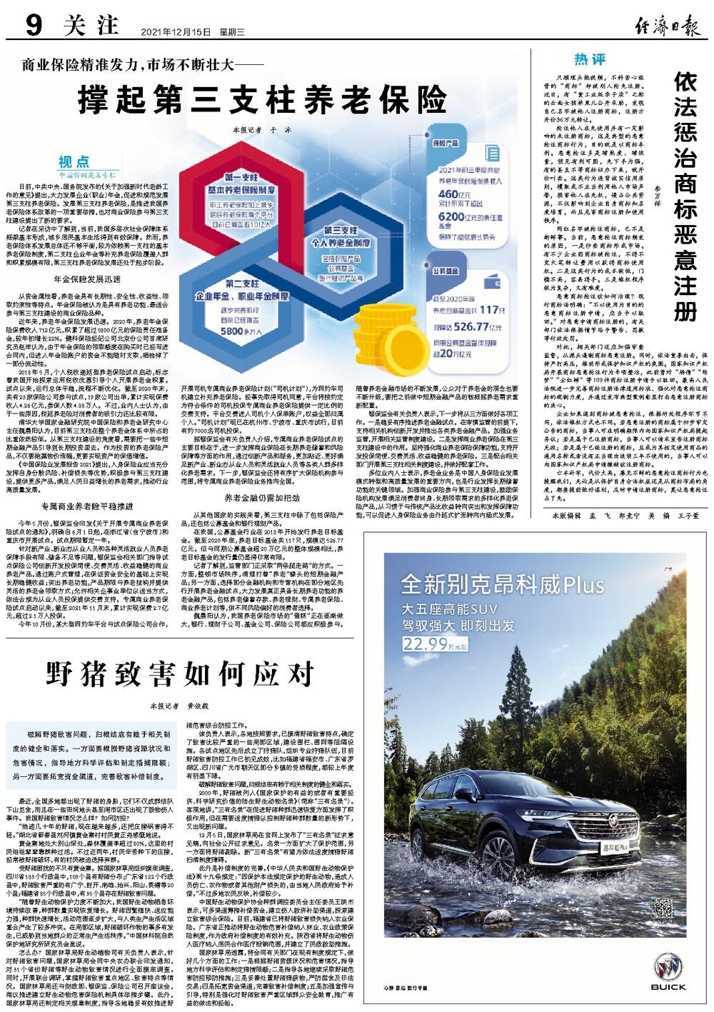 破解野猪致害问题,归根结底有赖于相关制度的健全和落实。一方面要根据野猪资源状况和危害情况,指导地方科学评估和制定猎捕限额;另一方面要拓宽资金渠道,完善致害补偿制度。