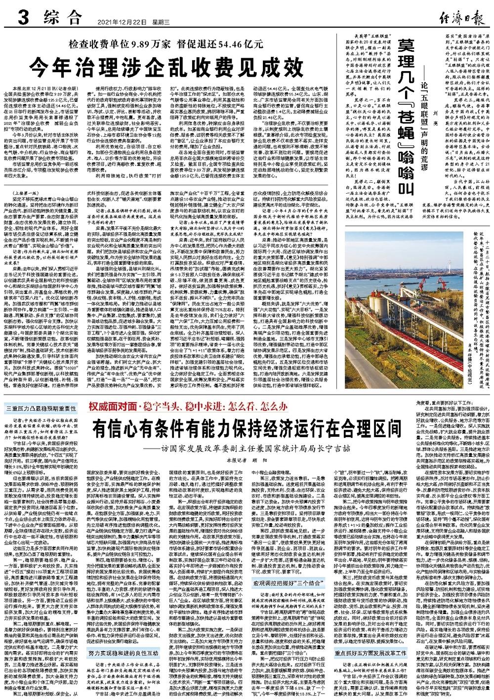 检查收费单位9.89万家 督促退还54.46亿元 今年治理涉企乱收费见成效 2021年12月22日