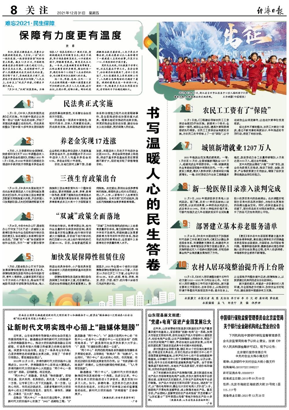 2021年稳就业促发展成绩亮眼。一增:1月份至11月份,全国城镇新增就业1207万人,超额完成全年预期目标。一降:城镇调查失业率曲线呈现稳中有降的走向。一升:一季度至三季度,需求人数和求职人数都有较大幅度增长。一稳:农村劳动力外出务工规模基本稳定,脱贫劳动力务工总量持续增加,9月底达到3103万人,超过去年规模。