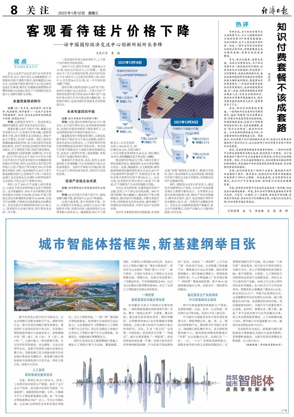 作为城市交通体系面向未来发展的重要方向,智能网联以车、路、网、云、图的协同重构产业,塑造数字时代城市竞争力。湖南湘江新区携手华为,成立智能网联创新中心,瞄准智能网联和智慧城市“双智”试点的融合应用,共同打造“一区,一云,一中心”的智能驾驶样板点,赋能本地传统优势企业智能网联技术,完善智能网联汽车产业链,助力湖南“三高四新”战略落地。哈尔滨太平供热有限公司联合华为,深入开展智慧供热的创新实践;基于物联网、大数据、人工智能技术对原供热系统进行全流程改进,供热企业可以感知用户室温,AI能力可以助力调节供热各环节阈值;在1400余万平方米的热网内,智慧供热方案覆盖了换热站122座,涉及居民6.6万户,相较于此前供热方式,全采暖期间节约标准煤约5193吨,减少碳排放约3397吨,在保障居民供热均衡、居住满意度的同时,为城市空气质量改善作出贡献。在深圳,智慧水务一期工程,涵盖了多个系统的数字化应用及解决方案,助力水务管理提质增效,人工巡检频次减少50%,预估减少污水溢流量3%—5%,减低污水处理总成本1%左右。
