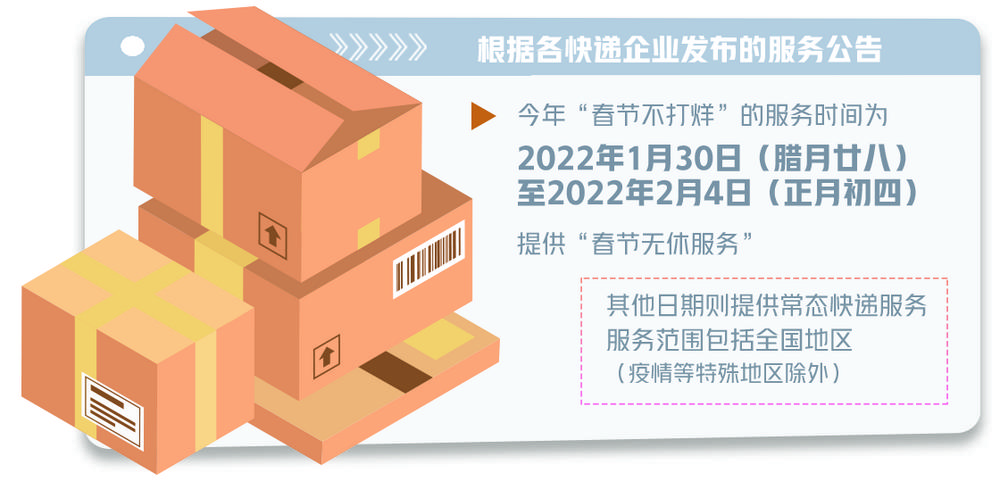 近日,有关“春节期间快递停运”的消息又在网络上传播开来。究竟春节期间还能不能发快递?会不会涨价?能否按时送达?