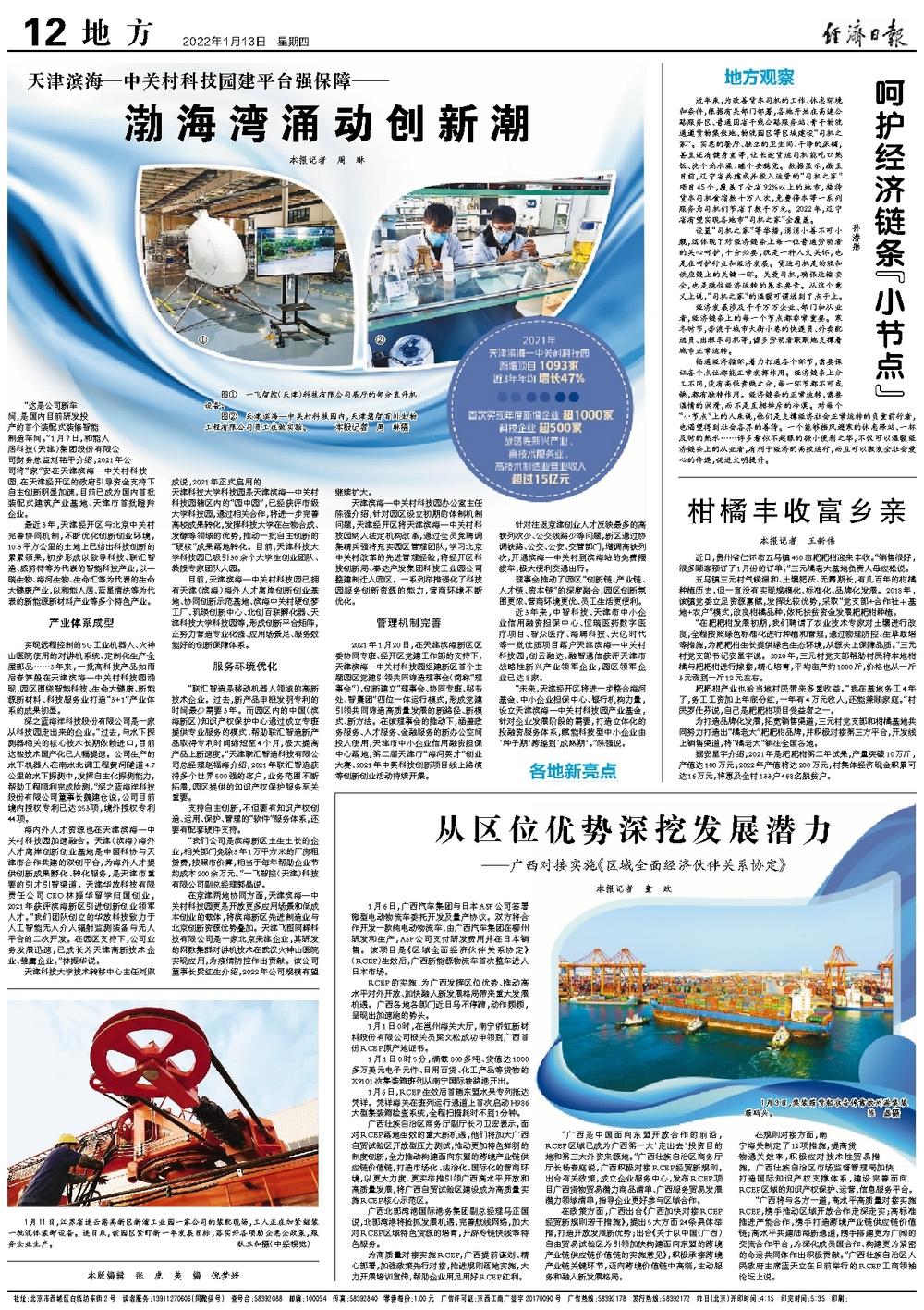 在京津两地协同方面,天津滨海—中关村科技园更是开放更多应用场景和低成本创业的载体,将滨海新区先进制造业与北京创新资源优势叠加。天津飞图同辉科技有限公司是一家北京来津企业,其研发的网数集群对讲机技术在武汉火神山医院实现应用,为疫情防控作出贡献。该公司董事长梁红生介绍,2022年公司规模有望继续扩大。
