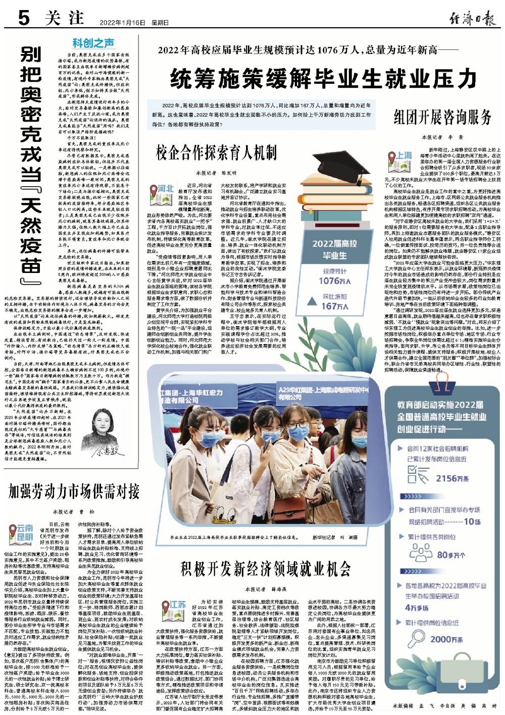 “受疫情等因素影响,用人单位需求比前几年有一定幅度缩减,特别是中小微企业招聘意愿同比下滑。”河北师范大学就业创业中心主任黄学兵说,针对2022届毕业生就业面临的困难,该校各学院根据毕业生求职意向、求职心态和服务需求等方面,做了数据分析并制定了工作方案。
