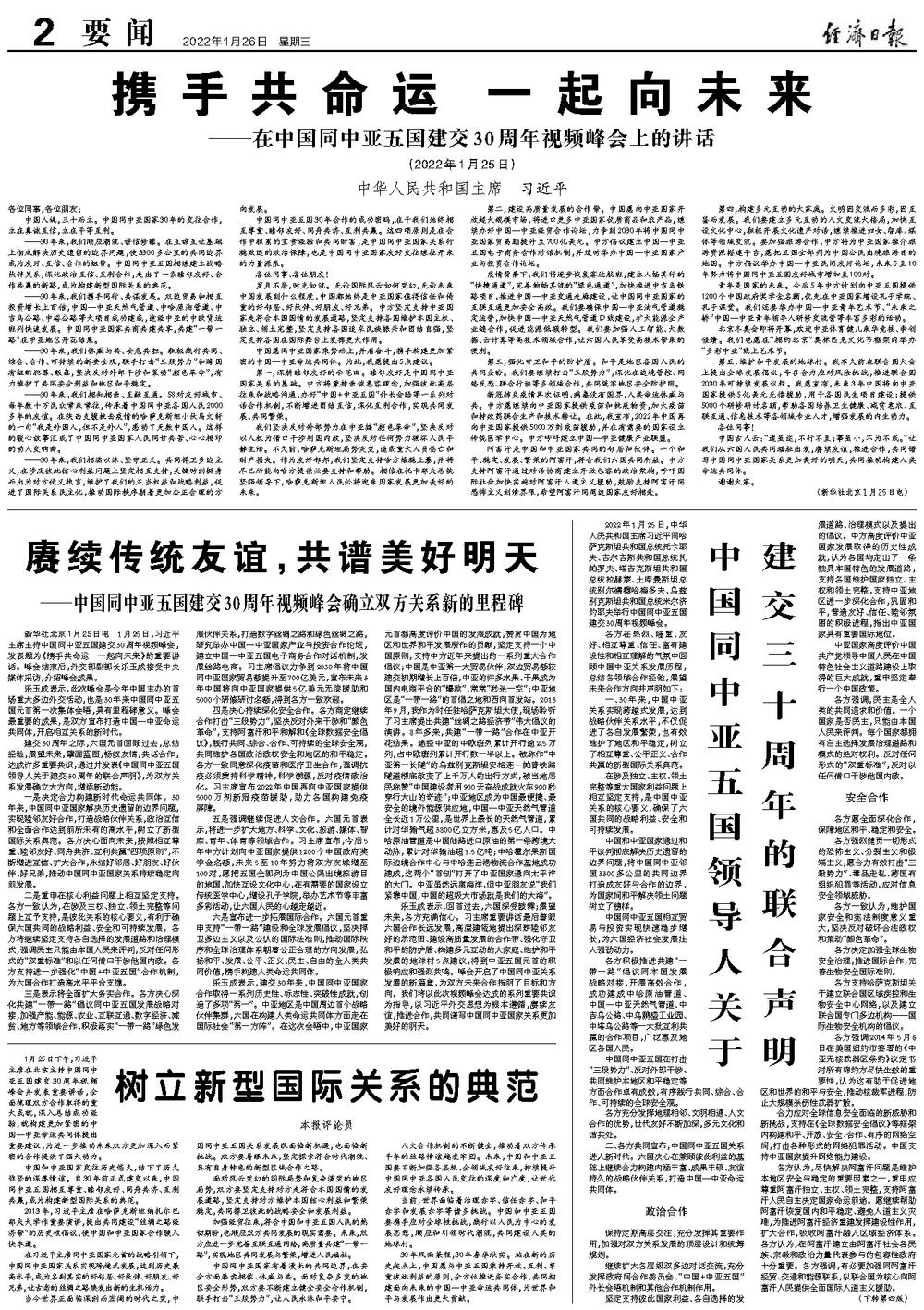 中国古人云:“道虽迩,不行不至;事虽小,不为不成。”让我们从六国人民共同福祉出发,赓续友谊,推进合作,共同谱写中国同中亚国家关系更加美好的明天,共同推动构建人类命运共同体。