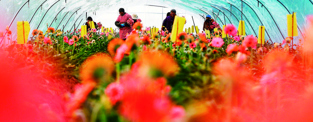 ▲2月4日,江苏省泗洪县界集镇后钟洼村,花农在采收非洲菊,保供假日市场。 许昌亮摄(中经视觉)