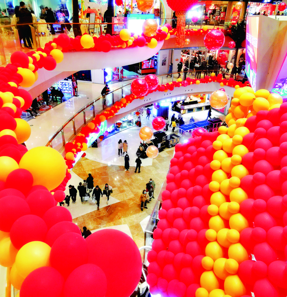 ▶2月4日,安徽省安庆市一商场悬挂气球、灯笼和中国结,营造出浓浓的节日氛围。 江 胜摄(中经视觉)