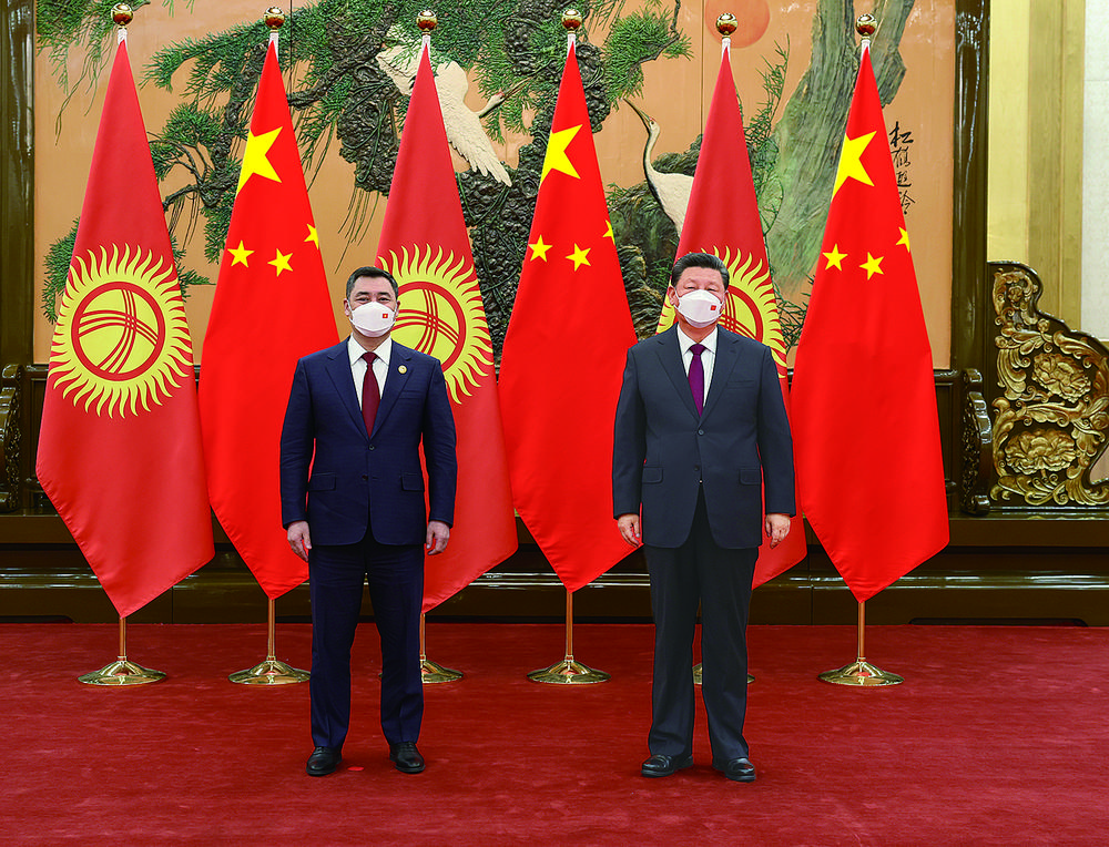 习近平指出,中吉建交30年来,两国关系实现跨越式发展,已经建成高水平的全面战略伙伴关系。中方坚定支持吉方自主选择的发展道路,坚定支持吉方维护国家独立、主权、安全,是吉尔吉斯斯坦可以信赖、倚重的朋友和伙伴。中方愿在既往合作基础上,同吉方深化全方位互利合作,更好造福两国人民。习近平强调,中吉两国要加强发展战略对接,中方愿扩大进口吉尔吉斯斯坦优质绿色农副产品,支持更多有实力的中国企业赴吉投资兴业,加快推进有关重点合作项目。充分利用两国边境疫情联防联控机制,提高口岸过货能力。中方支持建设中吉乌铁路,愿同吉方拓展医疗卫生、扶贫减贫、职业教育、妇女、青年等领域合作,尽快在吉建成鲁班工坊,帮助吉方培养更多专业技能人才。中方愿继续同吉方开展抗疫合作,为吉方提供更多新冠疫苗援助。中方愿同吉方全面提升安全合作水平,共同维护好两国及本地区安全稳定。加强在国际和地区事务中的协调合作,捍卫国际公平正义。