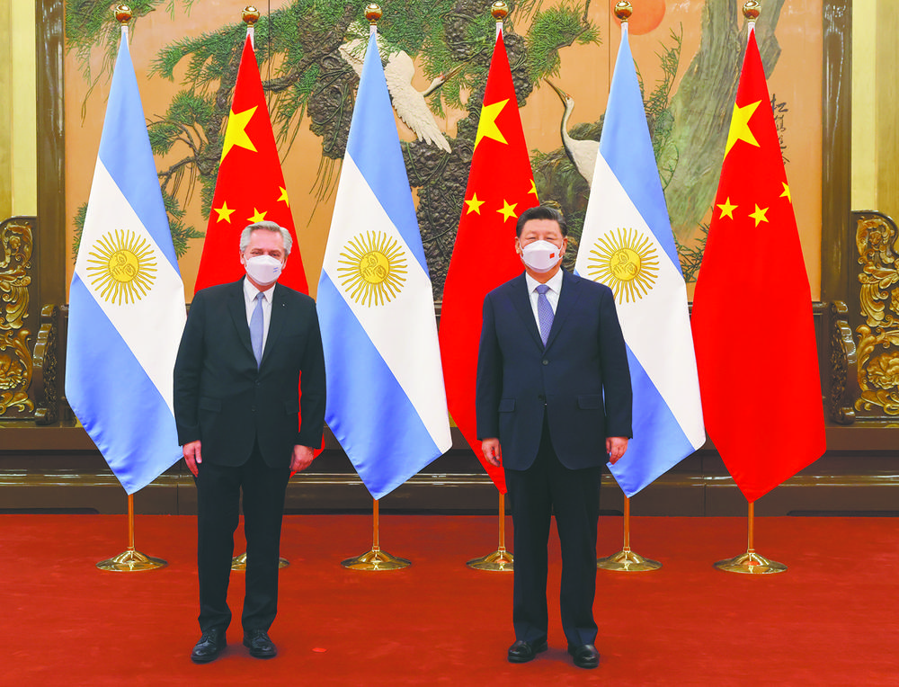 习近平强调,中方愿同阿方加强高层交往和治国理政经验交流,相互支持对方在维护主权、安全、发展利益上的正当主张。中方愿同阿方共享发展机遇,助力阿根廷扩大出口和产业升级。双方要高质量共建“一带一路”,充分发挥互补优势,落实好水电、铁路等现有重大项目,深化贸易、农业、能矿、基础设施、投融资、抗疫等领域合作。中阿航天、海洋等合作为人类探索星辰大海作出积极贡献。双方要努力打造数字经济、绿色发展等合作新亮点。我愿同你共同宣布启动2022中阿友好合作年,积极开展文化、教育、体育、媒体、青年、地方等领域交流,便利人员往来,促进民心相通。