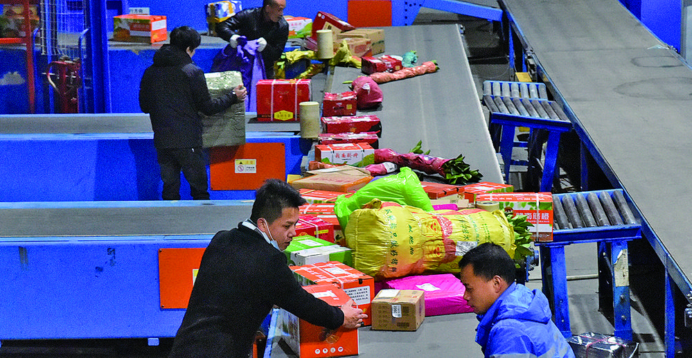 ▲2月6日,江西省安远县电商产业园快递公司,员工正分拣包裹,确保准时准点送达。安 萱摄(中经视觉)