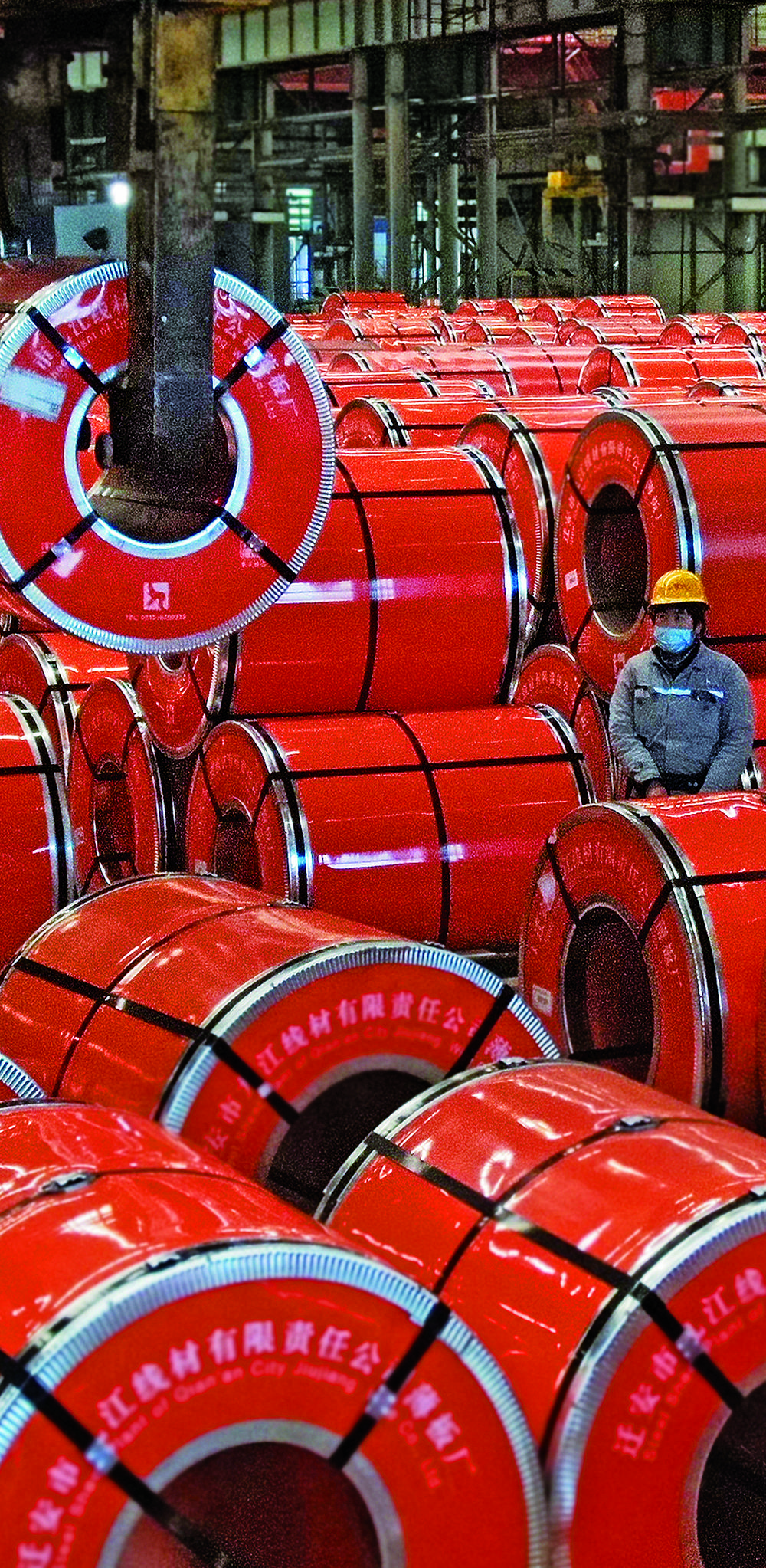◀2月6日,河北省迁安九江公司薄板厂成品库车间,工人对产品进行质检。新春伊始,迁安市各企业稳生产,保供市场。彭玉泊摄(中经视觉)