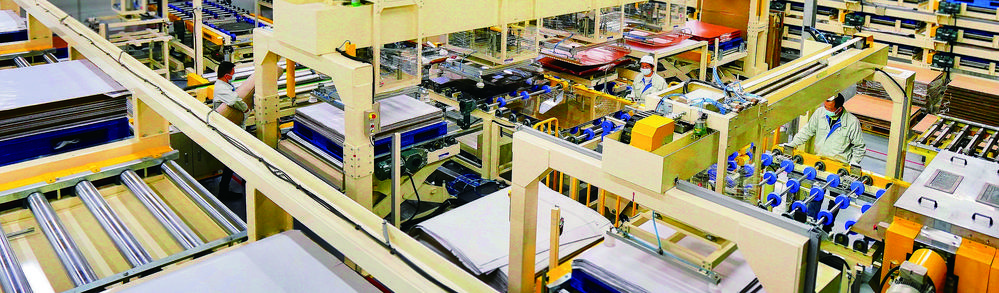 ◀2月6日,江西省龙南市联茂电子科技公司工人在车间赶制覆铜板。节日期间,龙南市推出稳岗留工奖励等十余项奖补措施,保障平稳生产秩序。李林烜摄(中经视觉)