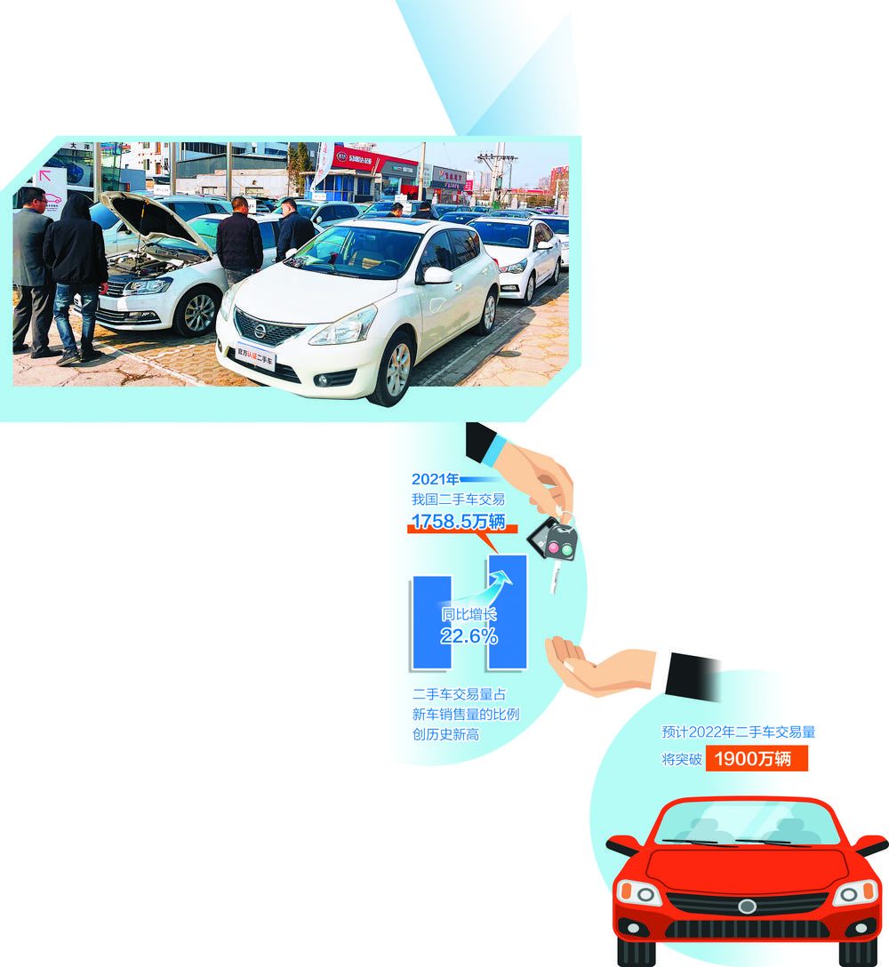 “随着各项利好政策的落地和实施,特别是减税、限制政策等‘堵点’问题逐渐松绑,二手车市场有望成为中国汽车消费的新蓝海。”中国汽车流通协会副秘书长罗磊预计,2022年我国二手车交易量将突破1900万辆,并会向2000万辆发起冲击。