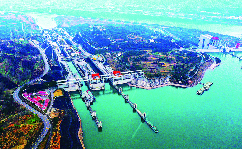 2月17日,在湖北省宜昌市夷陵区太平溪镇流域,船舶正有序通过三峡大坝。据悉,自2月21日8时开始,三峡大坝南线船闸和葛洲坝三号船闸将开始计划性检修,为期30天。两坝船闸大修期间,三峡北线船闸,葛洲坝一、二号船闸,三峡升船机原则上不安排停航检修。黄善军摄(中经视觉)