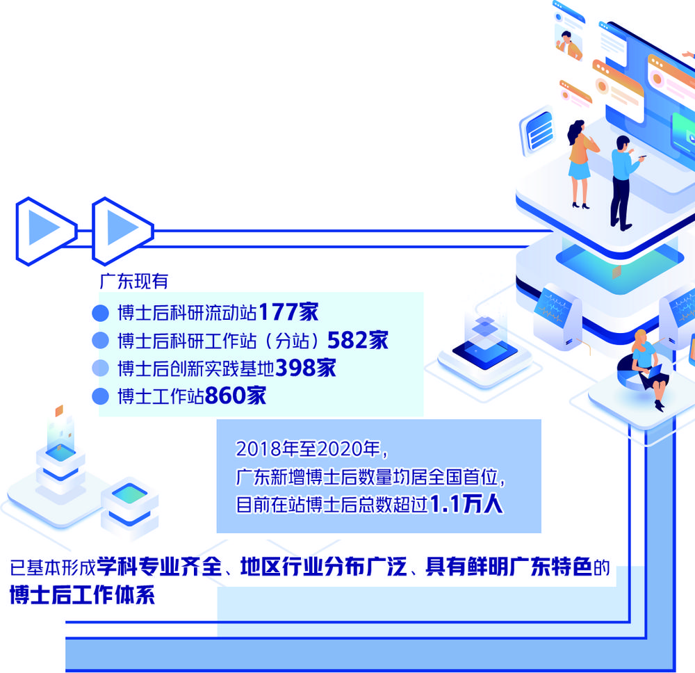 广东产业基础雄厚,企业对人才、对技术的需求广泛而迫切,综合营商环境优良,创新创业的舞台广阔。除了多年积累形成的“广东优势”,近年来,广东还积极构筑政产学研一体化平台,不断完善博士、博士后人才创新创业孵化激励机制。同时,广东强化多元资金投入,规范健全经费保障机制,为青年人才解决后顾之忧。其中,省级财政每年投入博士后资助超过6亿元,流动站和省属工作站博士后每人每年可获15万元日常生活补贴。身处产业一线的博士后科研工作站还更注重以高薪、股份等形式积极引才。