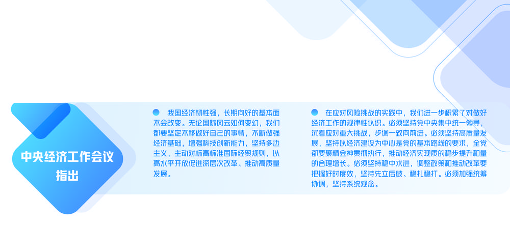 当前,世界百年未有之大变局和新冠肺炎疫情全球大流行交织影响。在世纪疫情冲击下,百年变局加速演进,外部环境更趋复杂严峻和不确定,我国经济发展面临需求收缩、供给冲击、预期转弱三重压力,需要研究诸多新课题、迎接新挑战。中央经济工作会议强调“推动经济实现质的稳步提升和量的合理增长”,对于始终坚持党的基本路线,进一步做好当前经济工作,具有重大现实意义。
