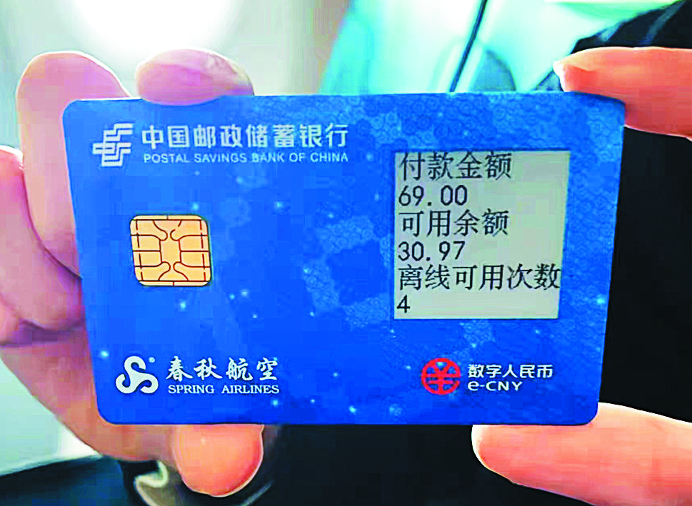 不久前,邮储银行上海分行与春秋航空合作,通过数字人民币“硬钱包”成功实现双离线环境下的消费与支付。在春秋航空上海飞往厦门的航班上,一位乘客像往常一样,在航班上选购春秋航空特色产品时,通过可视卡式“硬钱包”,在乘务员手持的支付终端上轻轻一贴,便完成支付。此次不同于此前使用手机支付数字人民币,是收款方和付款方都在无网络环境下完成了消费和支付,乘客无需使用手机,只需手持可视卡式“硬钱包”一贴即可完成支付,且消费后“硬钱包”右上角的电子墨水屏窗口可清晰查看消费金额、卡片余额、支付次数。