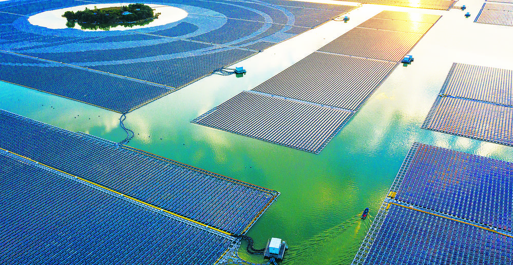 2月24日,电力巡检人员驾船在华能山东省德州市陵城丁庄水库光伏电站二期开展日常运行维护。华能丁庄光伏电站是世界单体容量最大的漂浮式光伏电站,随着项目二期建成并网,电站全面竣工投运,预计每年可提供清洁电能5.5亿千瓦时,相当于节约标煤16.8万吨,减排二氧化碳45.3万吨。