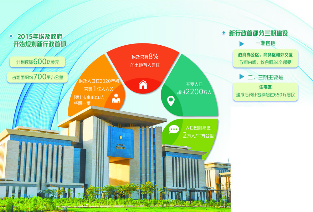 2015年埃及政府开始对新行政首都进行规划,计划斥资600亿美元,在沙漠中建起占地面积约700平方公里的新城。按照规划,新行政首都分三期建设,一期包括政府办公区、商务区和外交区,主要是政府内阁、议会和34个部委;二期和三期主要是住宅区。不过埃及政府强调,“开罗将永远是开罗,不会被取代”,新行政首都的地位类似“城市副中心”。