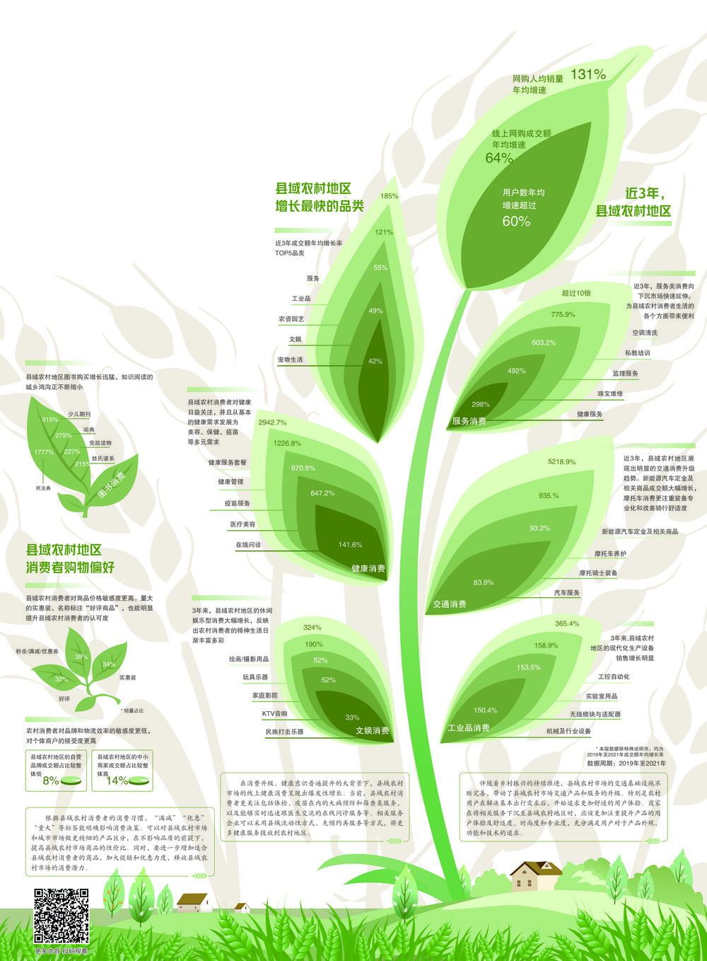 县域农村市场是中小商家的成长商机。城市消费者对品牌的认可度更高,包括商品品牌、平台品牌信誉等。在部分一二线城市,小店的身影越来越少了。但是,农村消费者对中小商家的认可度更高,农村市场的主体也包含大量的中小商家。中小商家可通过不断提升运营水平和服务水平,激活县域农村市场的消费潜力,挖掘更大的增长空间,使县域农村市场的生产及商业形成一个互相促进、互利互惠的良性循环。
