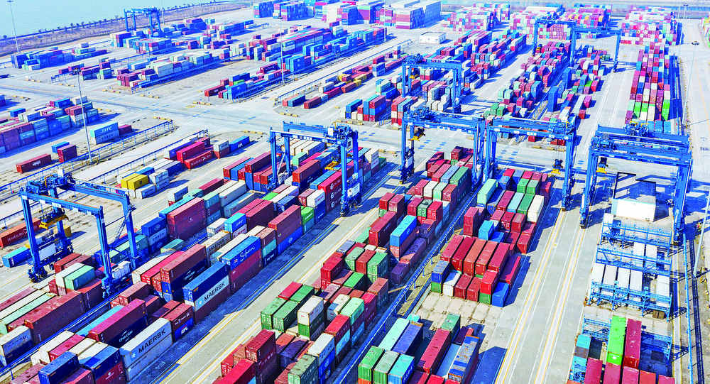 2月26日,江苏南通港通海港区集装箱堆场一派繁忙景象。新年以来,南通港工作人员安全有序作业,力争取得“开门红”。