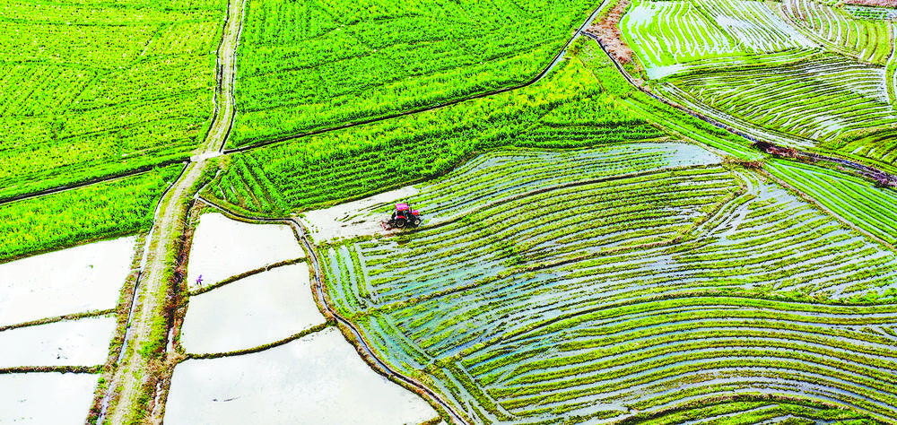2月26日,江西省龙南市桃江乡,“铁牛”翻土机忙碌在田野上。当地抢抓土壤湿润墒情良好的有利时机,组织力量翻耕土地,为早稻生产做好准备。李林烜摄(中经视觉)