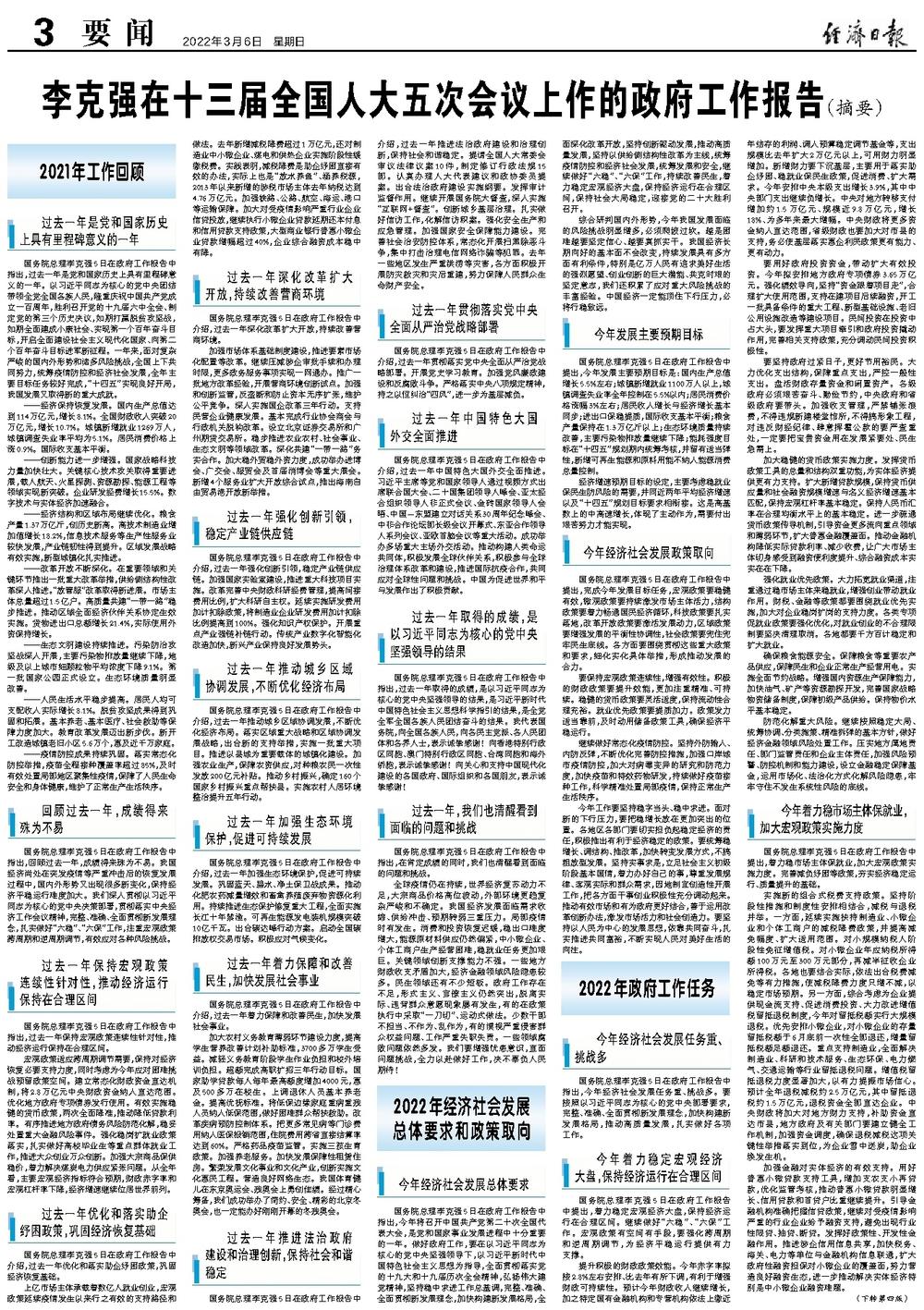 国务院总理李克强5日在政府工作报告中指出,过去一年是党和国家历史上具有里程碑意义的一年。以习近平同志为核心的党中央团结带领全党全国各族人民,隆重庆祝中国共产党成立一百周年,胜利召开党的十九届六中全会、制定党的第三个历史决议,如期打赢脱贫攻坚战,如期全面建成小康社会、实现第一个百年奋斗目标,开启全面建设社会主义现代化国家、向第二个百年奋斗目标进军新征程。一年来,面对复杂严峻的国内外形势和诸多风险挑战,全国上下共同努力,统筹疫情防控和经济社会发展,全年主要目标任务较好完成,“十四五”实现良好开局,我国发展又取得新的重大成就。