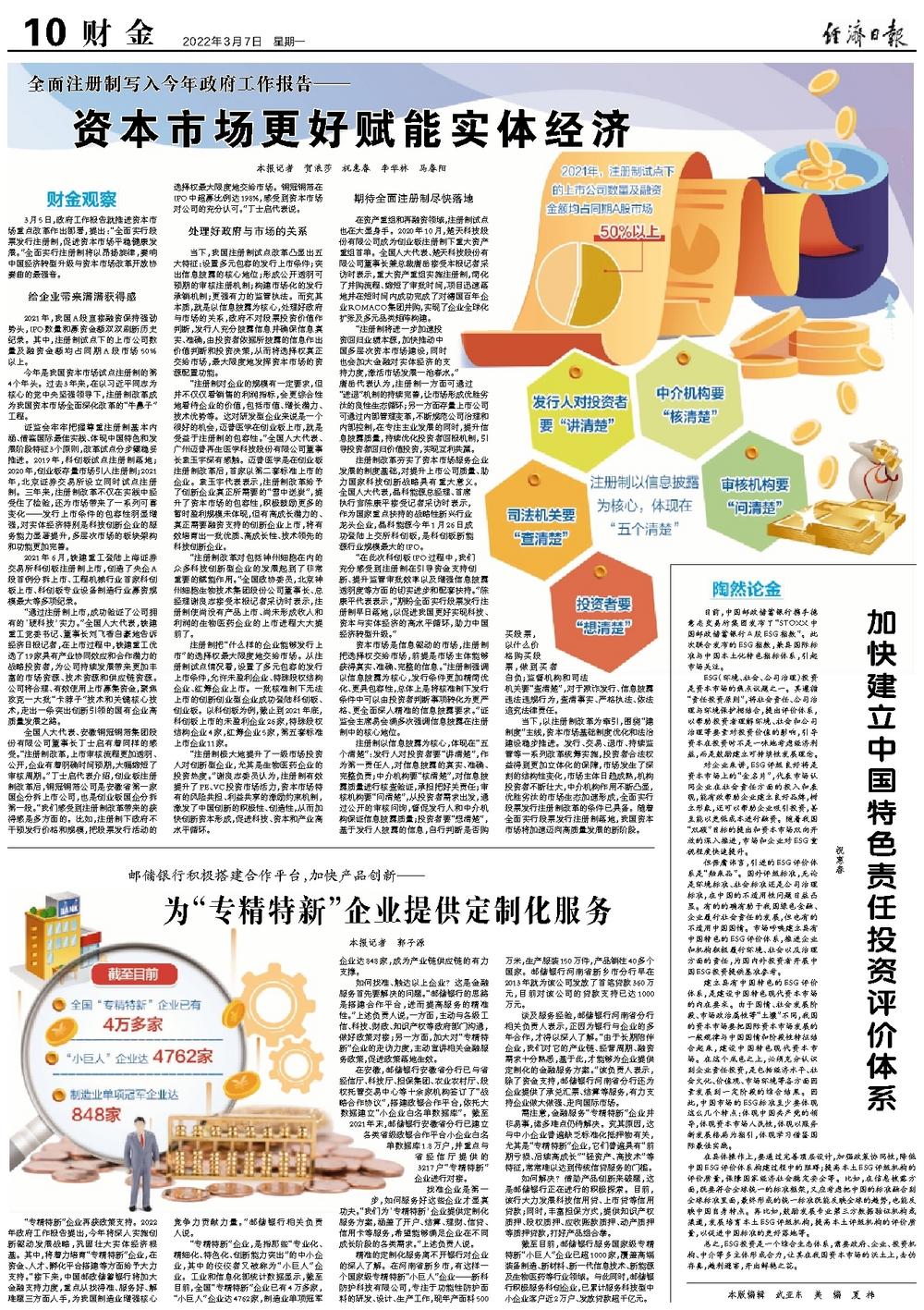 全面注册制写入今年政府工作报告— 资本市场更好赋能实体经济 本报记者 贺浪莎 祝惠春 李华林 马春阳 2022年03月07日