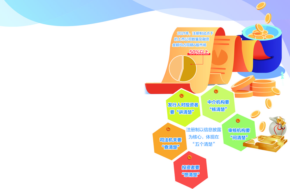 注册制以信息披露为核心,体现在“五个清楚”:发行人对投资者要“讲清楚”,作为第一责任人,对信息披露的真实、准确、完整负责;中介机构要“核清楚”,对信息披露质量进行核查验证,承担把好关责任;审核机构要“问清楚”,从投资者需求出发,通过公开的审核问询,督促发行人和中介机构保证信息披露质量;投资者要“想清楚”,基于发行人披露的信息,自行判断是否购买股票,以什么价格购买股票,做到买者自负;监督机构和司法机关要“查清楚”,对于欺诈发行、信息披露违法违规行为,查清事实、严格执法、依法追究法律责任。