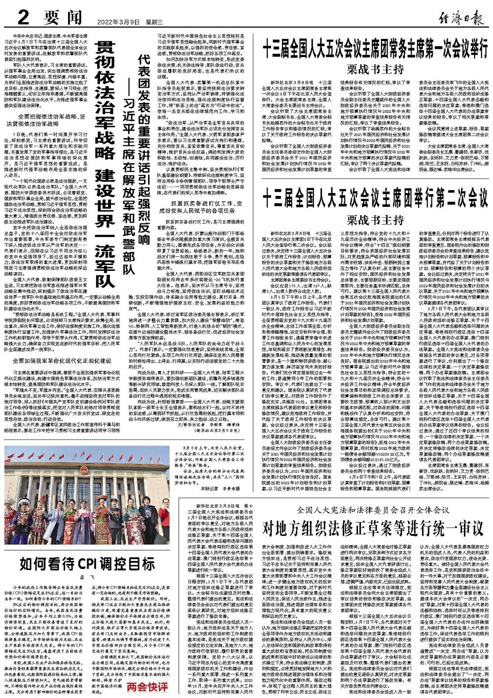会议听取了杨振武作的大会秘书处关于2021年国民经济和社会发展计划执行情况与2022年国民经济和社会发展计划的决议草案代拟稿、关于2021年中央和地方预算执行情况与2022年中央和地方预算的决议草案代拟稿的汇报,审议了两个决议草案代拟稿。
