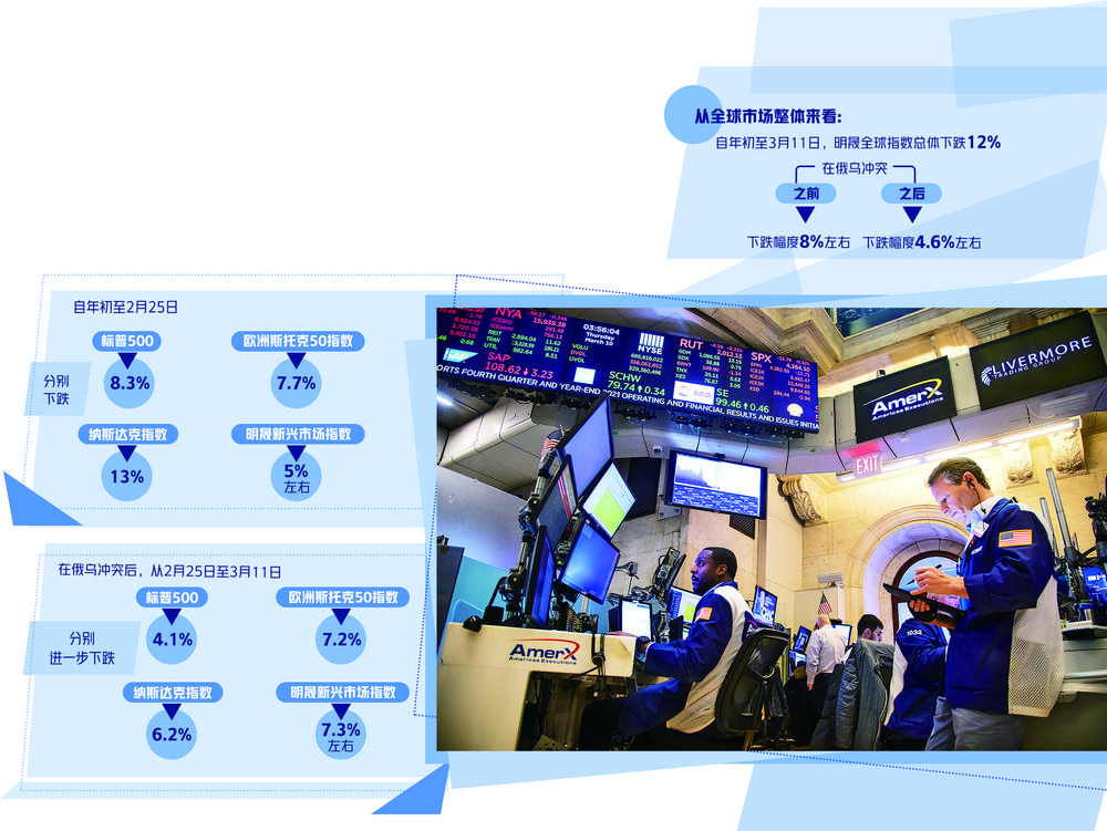 当前,全球目光都聚集在俄乌冲突对资本市场的冲击,然而市场的震荡下行态势在年初就已经显现。从全球市场整体来看,自年初至3月11日,明晟全球指数总体下跌了12%,在俄乌冲突之前下跌幅度为8%左右,而在俄乌冲突之后下跌幅度在4.6%左右。