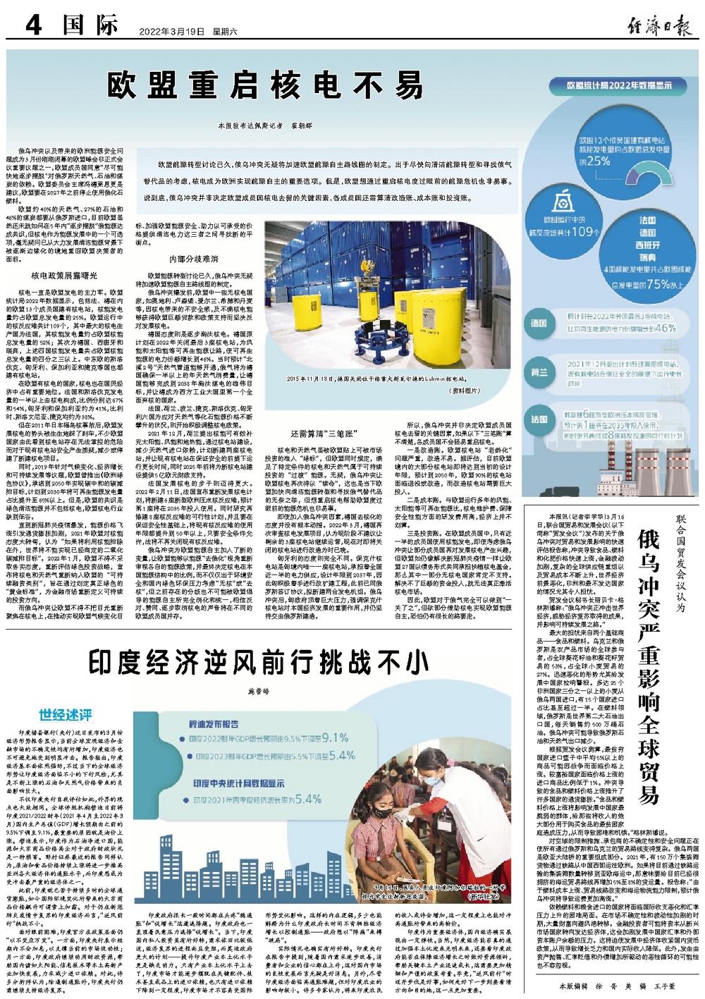 三是投资账。在欧盟成员国中,只有近一半的成员国使用核能发电,即使考虑俄乌冲突让部分成员国再对发展核电产生兴趣,但欧盟如仍像解决新冠肺炎疫情一样让欧盟27国以债务形式共同承担扶植核电基金,那么其中一部分无核电国家肯定不支持。解决不了巨额的资金投入,就无法真正激活核电市场。