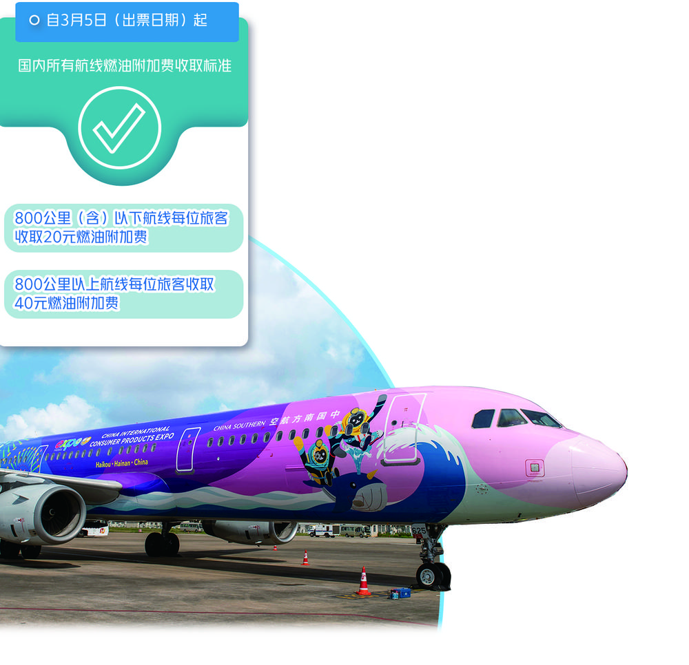 2018年6月5日,航空公司恢复征收国内航线燃油附加费,此后历经多次调整。今年2月5日,国内航线燃油附加费恢复征收,标准为800公里(含)以下航线每位旅客收取10元,800公里以上航线每位旅客收取20元。