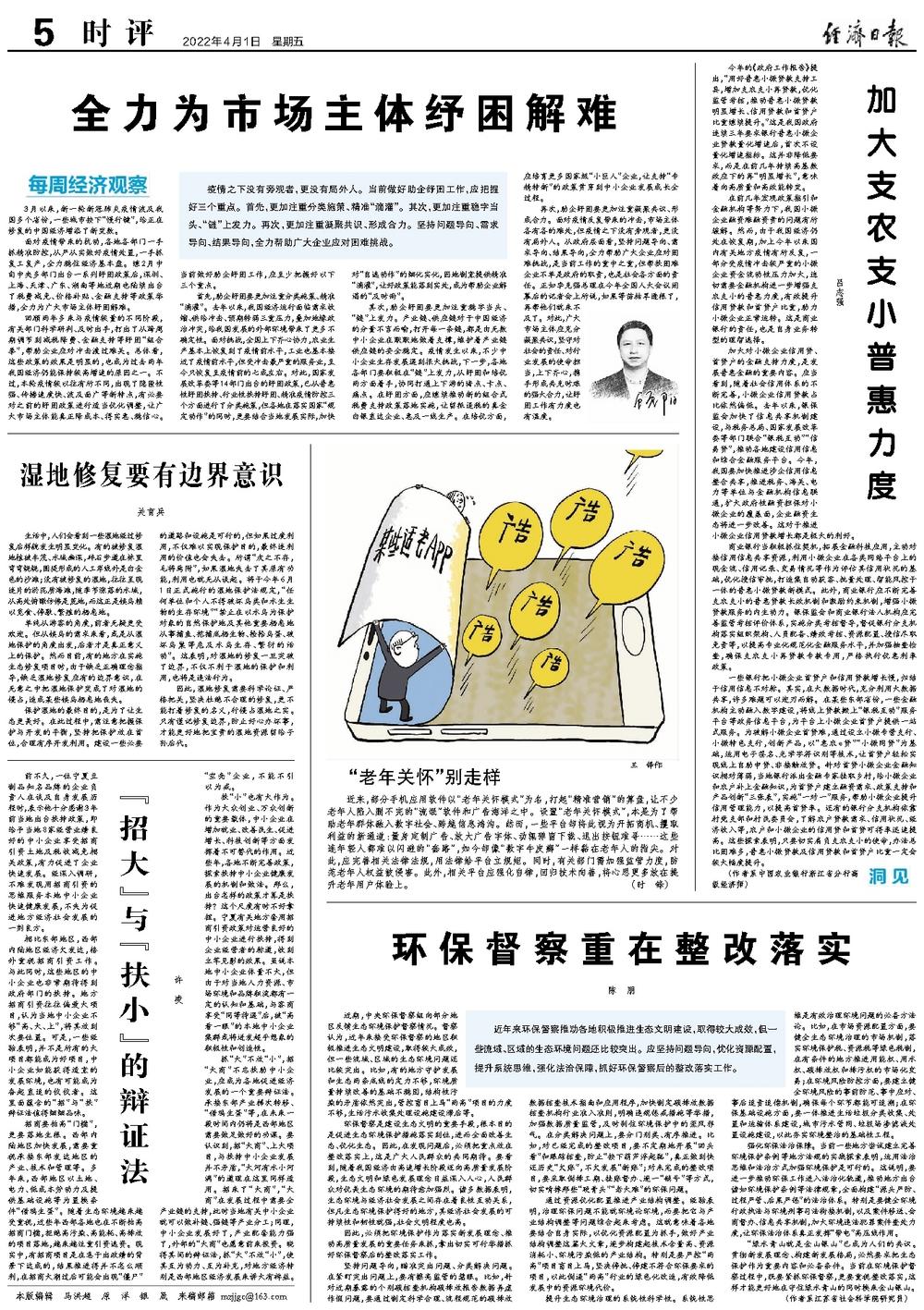 加大支农支小普惠力度 吕志强 2022年04月01日