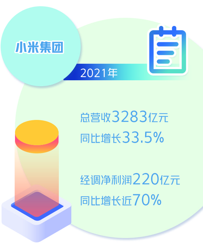 安信证券分析师焦娟认为,小米高端智能手机出货量占比由2020年的7%提高至2021年的13%,带动智能手机业务毛利率提升3.2个百分点达到11.9%、智能手机收入占比提高1.7个百分点达到63.6%,推动小米集团整体收入同比增长33.5%。