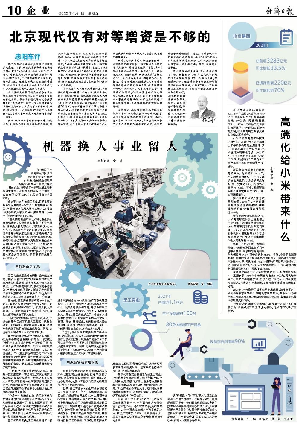 业绩的取得源于小米坚持技术立业,不断增加研发投入。王翔表示,2021年小米研发支出达132亿元,同比增长42.3%;未来五年还将加码,总投入超1000亿元。对科技的持续投入,也将为小米高端化发展带来更多具有突破性的可能。