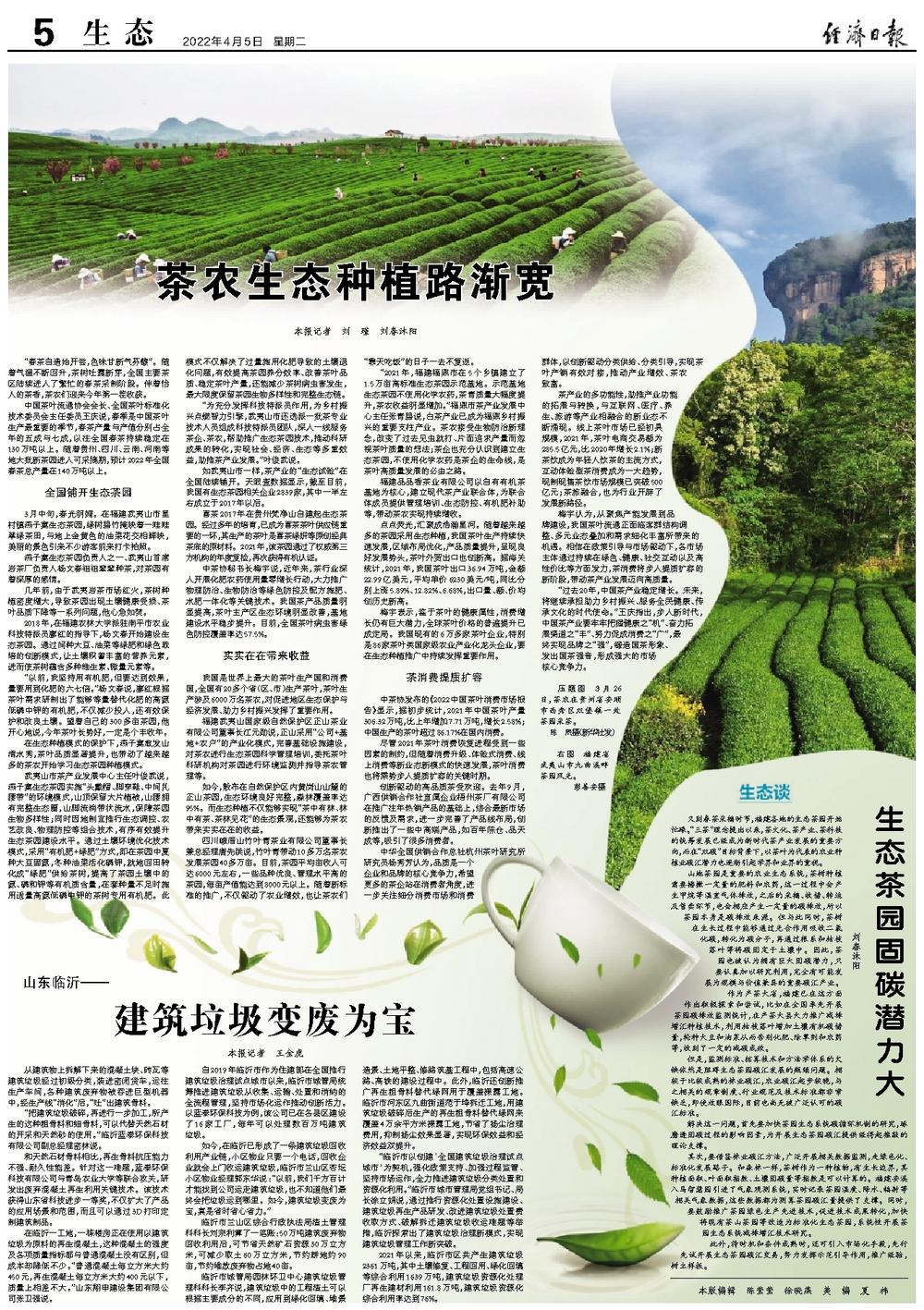 我国是世界上最大的茶叶生产国和消费国,全国有20多个省(区、市)生产茶叶,茶叶生产涉及6000万名茶农,对促进地区生态保护与经济发展、助力乡村振兴发挥了重要作用。